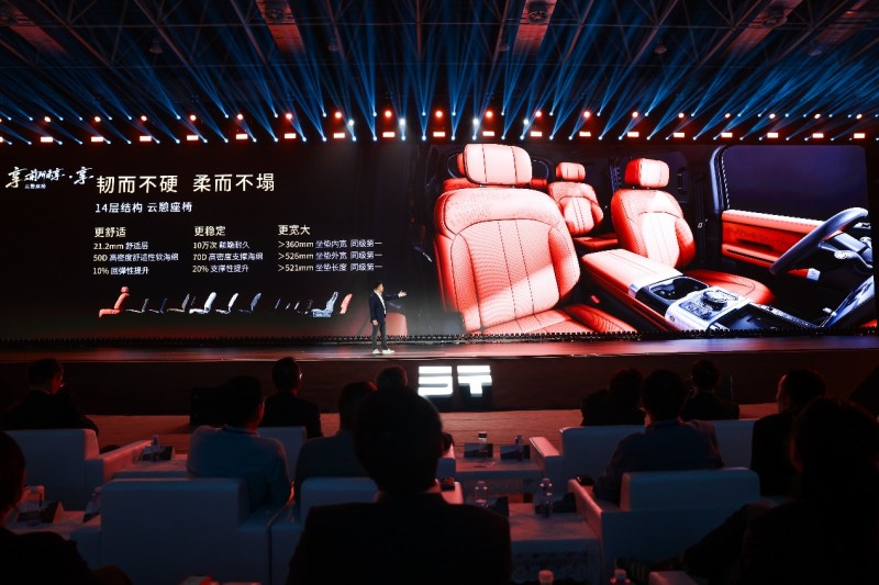 G700车内采用云憩座椅精选Nappa真皮,搭载莱斯康18扬声器音响,经过专业声学调校,确保每个座位都是黄金VIP听声位,让越野途中每一段旅程都成为享受。