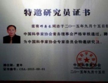 2015年9月15日聘为中国科学家协会专家委员会特邀研究员,证书编号:CSA-2015-09-01。